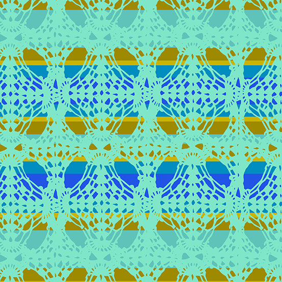 Lace in Mint by Alison Glass for Andover. Chrysanthemum is Oeko-Tex Certified and perfect for all your patchwork and sewing needs. 100% Cotton Fabric. Coordinating Fabrics available. 110cm wide.
