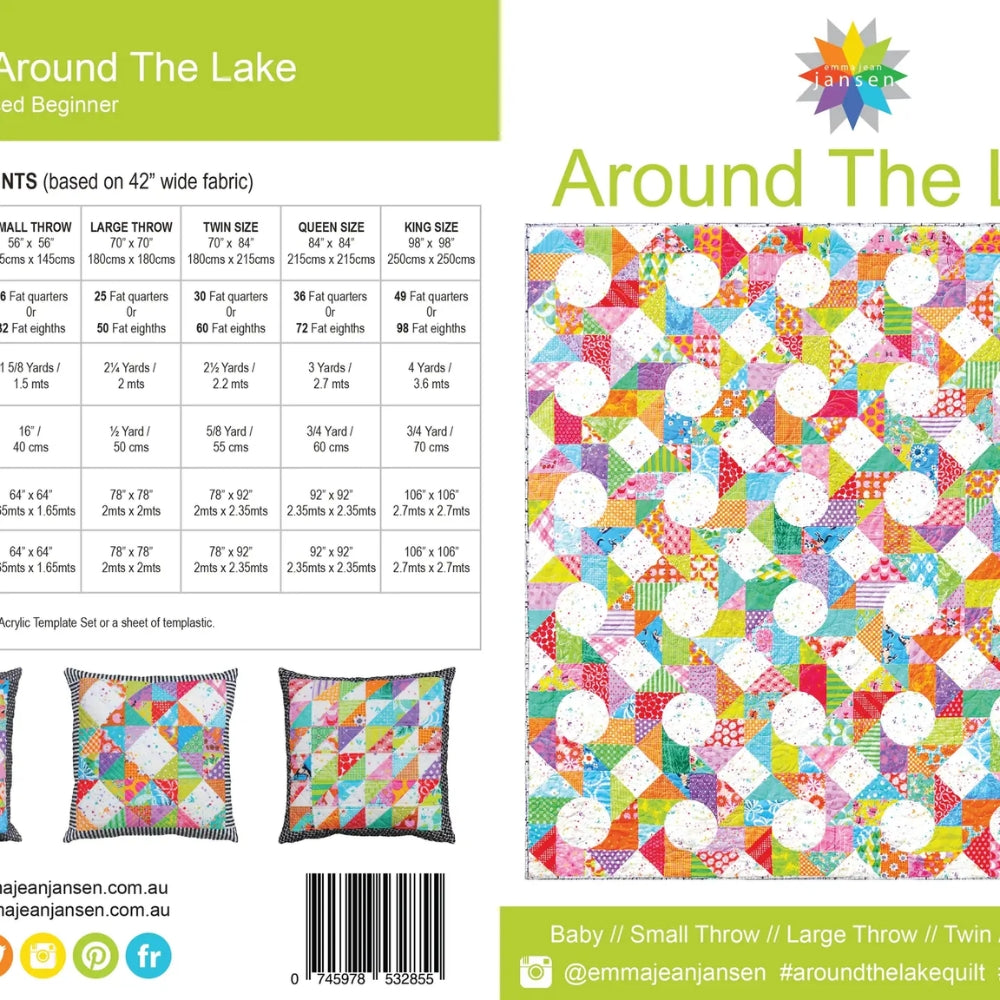 Around the Lake Quilt Pattern by Emma Jean Jansen is a fresh and creative approach to traditional quilt blocks. The pattern features an extended Drunkard’s Path and a Flying Geese Unit, resulting in a visually intricate design that is deceptively simple to piece together. The step-by-step diagrams and photos provided in the pattern make the quilting process a breeze, while also offering suggestions on utilizing the bonus Half Square Triangle blocks to create coordinating cushions.