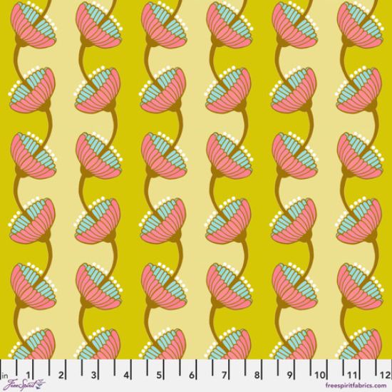 Brave Stripped Bells in Saffron 100% cotton fabric by Anna Maria Horner for Free Spirit fabrics.  44" wide machine washable.  Perfect for patchwork, applique, bags and clothing. Coordinating fabrics available