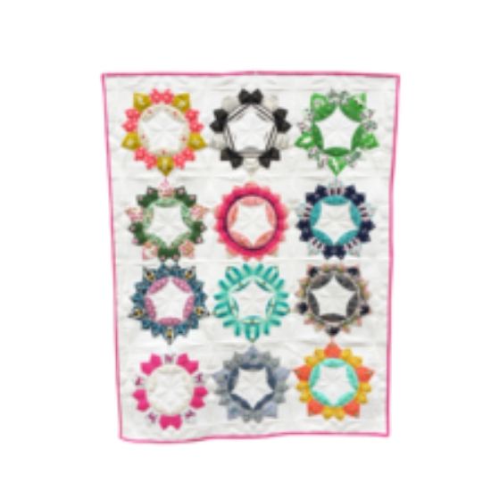Brimfield Block Star Paper Piece Pack by Paper Pieces. Complete Piece Pack makes 12 blocks.  You will need to purchase The Brimfield Block Star  Pattern by Kim Martucci and Nisha Bouri for the instructions to make the blocks.