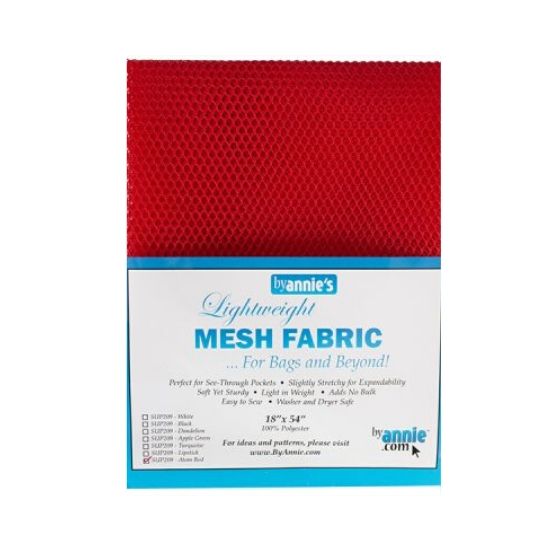 Lightweight and a bit stretchy, this mesh is fabulous! Perfect for pockets on bags or anywhere you want to be able to see what you are storing, the mesh also works great in various garment applications and utility needs. To help you sew, the mesh is specially coated to be less slippery and easy to work with, while still being soft and pliable.