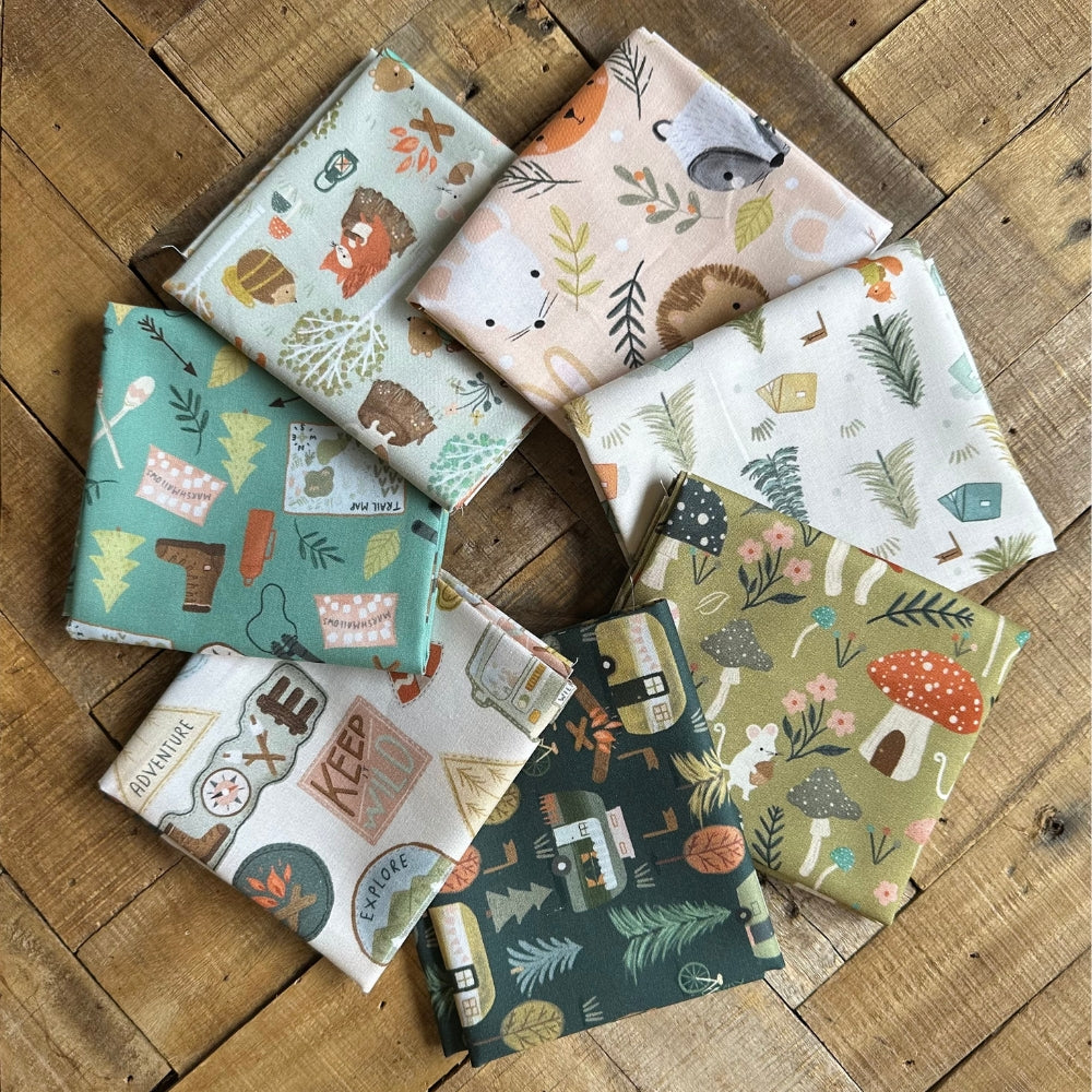 Cedar Camp Fabrics by Ramble & Bramble for Dashwood Studio 100% cotton precut fabric pack consisting of 7 coordinating pieces of fabric 18" x 22" for patchwork, applique and sewing.