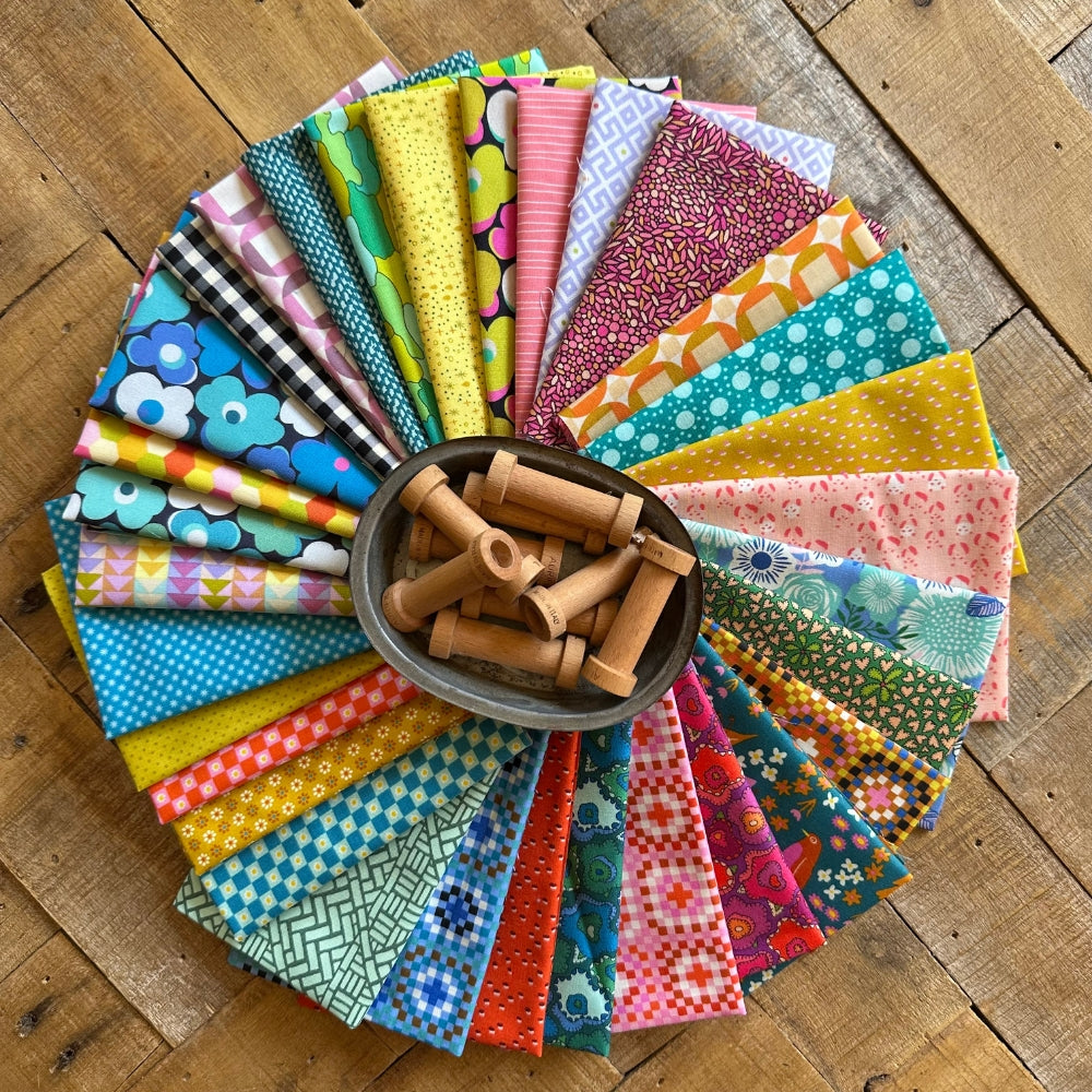 32 fabric pieces approx 9" x 11" cut from various fabric collections across the ranges from Fabric Sauce perfect for patchwork, applique and quilting. 100% cotton.