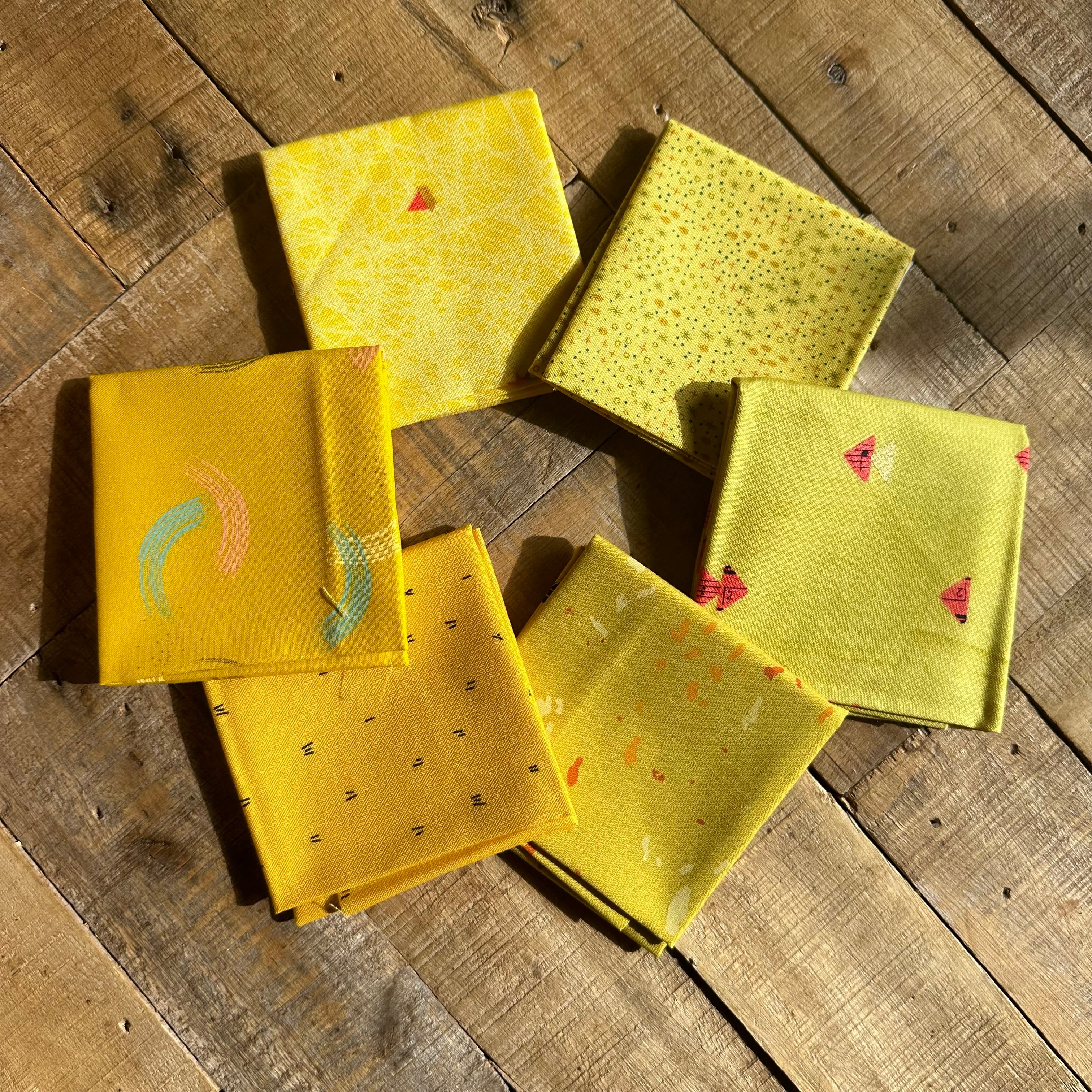 Yellow Colour Block Fat Eight Bundle includes 6 pieces of fabric in each bundle personally curated by Fabric Sauce.  Perfect for paper piecing, patchwork and applique.