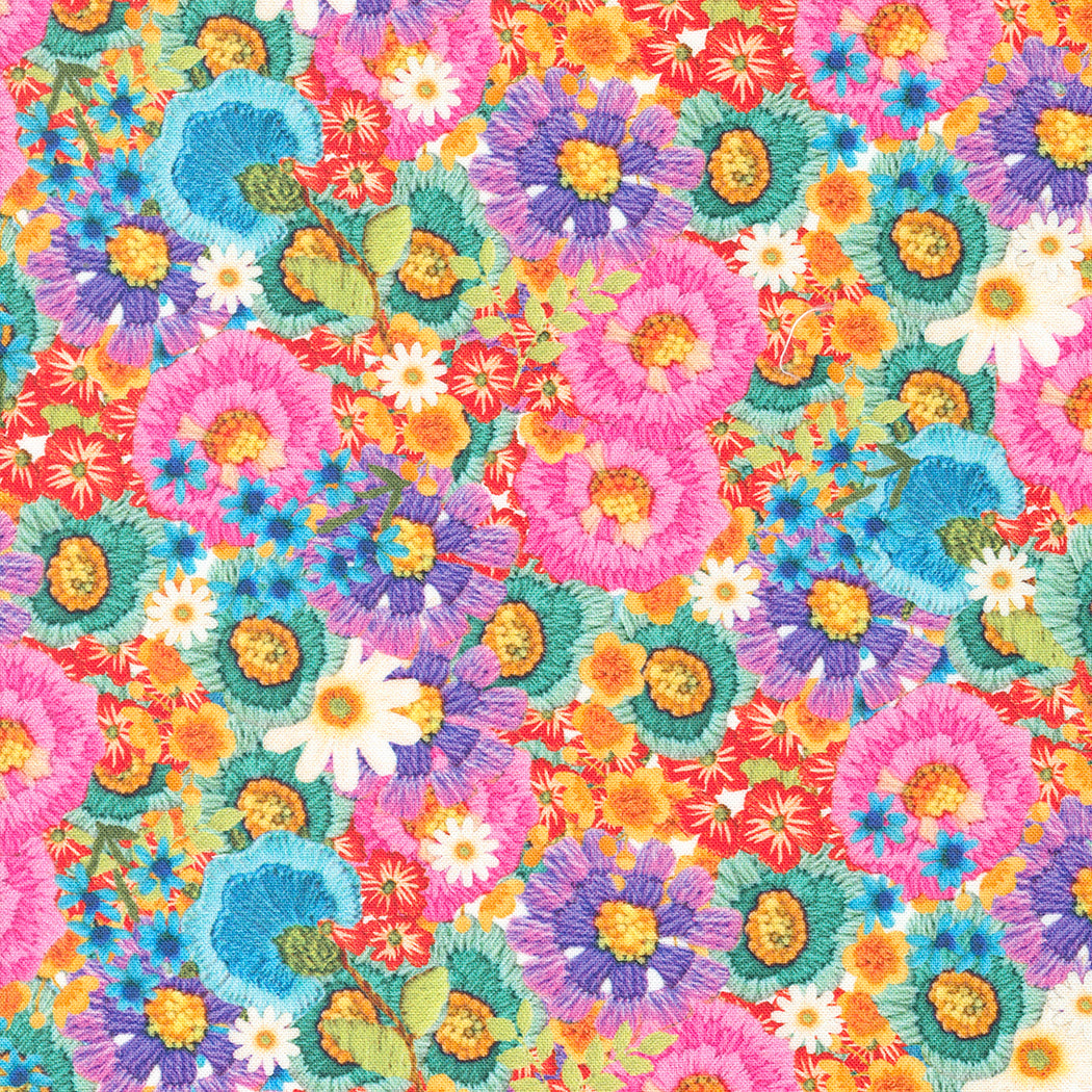Discover embroidered and crewel-stitched flowers, birds, and sweet repeats in the bright colors of happy in this exciting collection inspired by craft kits of the 60s and 70s. Cathe reproduced her nostalgic batch of crocheted potholders & hotpads into delightful prints, and created a rainbowesque cheater-quilt design derived from her treasured mid-century patchwork throws. Projects of all shapes and sizes become extra cheerful with Vintage Soul fabrics!
