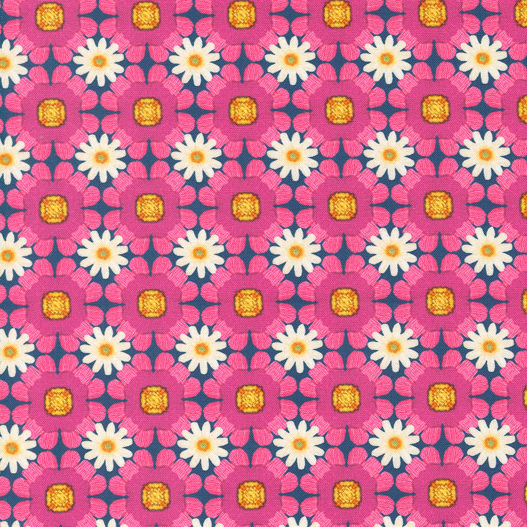 Discover embroidered and crewel-stitched flowers, birds, and sweet repeats in the bright colors of happy in this exciting collection inspired by craft kits of the 60s and 70s. Cathe reproduced her nostalgic batch of crocheted potholders & hotpads into delightful prints, and created a rainbowesque cheater-quilt design derived from her treasured mid-century patchwork throws. Projects of all shapes and sizes become extra cheerful with Vintage Soul fabrics!
