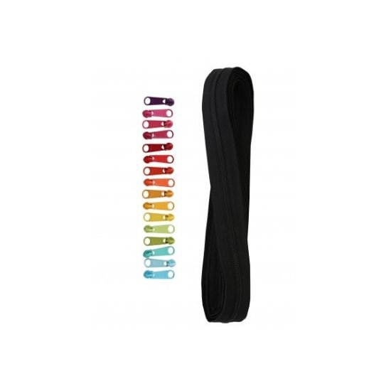 Zipper by the Yard Black with Multi Pulls by annie.com