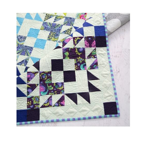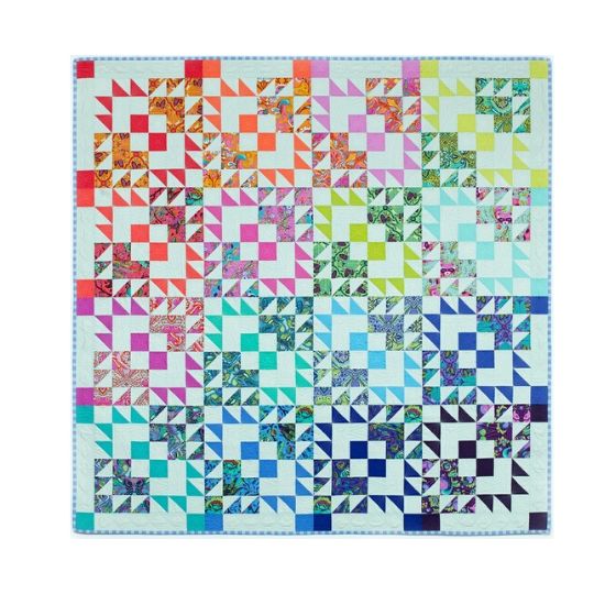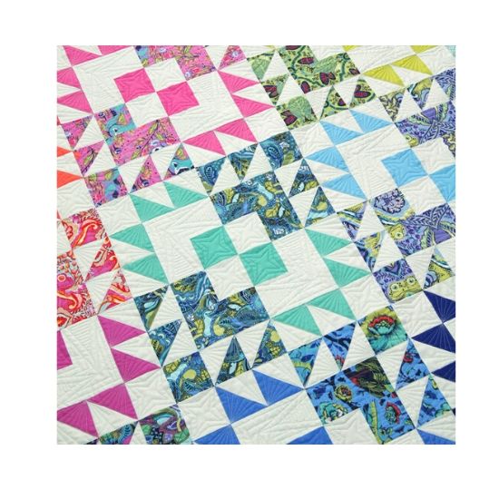 Electric Pop Quilt Pattern by Jemima Flendt of Tied with a Ribbon. Pattern includes 3 quilt sizes (Baby Quilt, Lap Quilt, Queen Quilt). Match your fabourite prints and solids to make this quilt.
