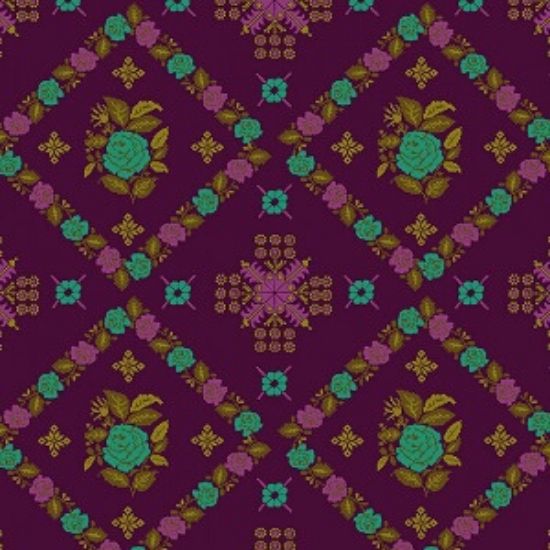 Tamborine Cornered in Regal 100% cotton fabric by Anna Maria Horner for Free Spirit fabrics. 44" wide machine washable. Perfect for patchwork, applique, bags and clothing. Coordinating fabrics available