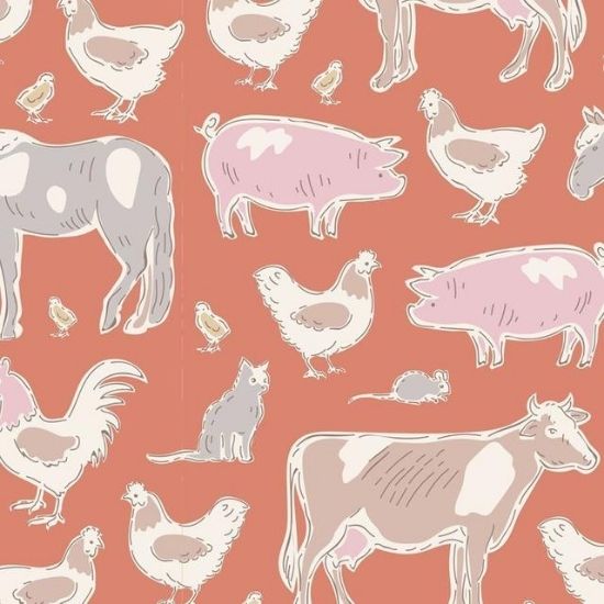 Maple Farm - Tiny Farm Animals Ginger Fabric 100% cotton fabric for Tilda. 112cm wide. Coordinating fabrics and precuts available.