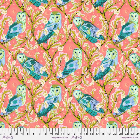 Moon Garden Night Owl in Dawn 100% cotton fabric by Tula Pink for Free Spirit fabrics. 44" wide machine washable. Perfect for patchwork, applique, bags and clothing. Coordinating fabrics available.