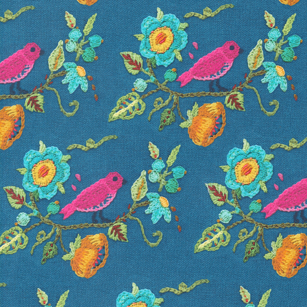 Discover embroidered and crewel-stitched flowers, birds, and sweet repeats in the bright colors of happy in this exciting collection inspired by craft kits of the 60s and 70s. Cathe reproduced her nostalgic batch of crocheted potholders & hotpads into delightful prints, and created a rainbowesque cheater-quilt design derived from her treasured mid-century patchwork throws. Projects of all shapes and sizes become extra cheerful with Vintage Soul fabrics!