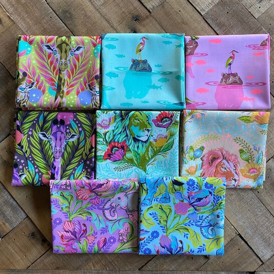 Everglow by Tula Pink 100% cotton precut fabric pack consisting of 8 coordinating pieces of fabric 18" x 22" for patchwork, applique and sewing.  Coordinating fabrics available.  We advise against prewashing precut fabrics.