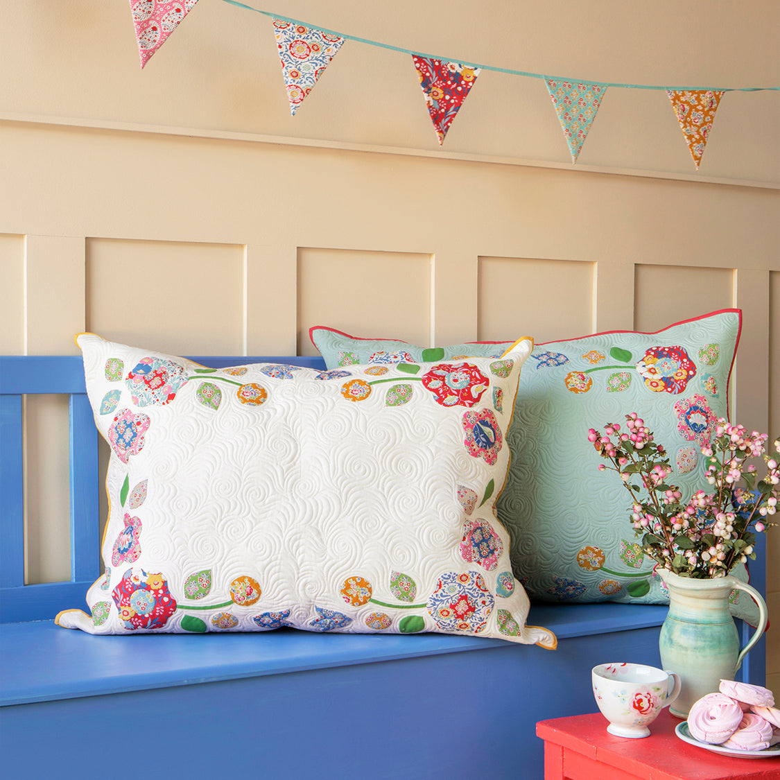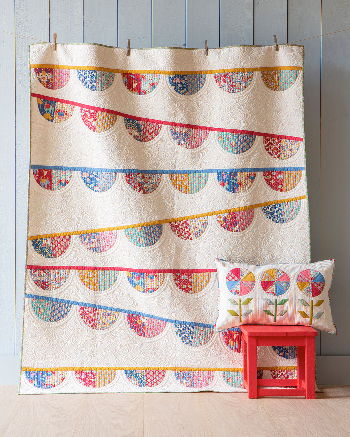 The Jubilee collection projects also play on the birthday and celebratory theme. The Birthday quilt could be a sweet gift for a christening, or birthday present for a child. The delightful My Birthday Party quilts and pillows make playful additions to a cool children’s room. And the simpler Bunting quilts and Lollyflower pillows are great for jubilees, Fourth of July celebrations or 17 May (Norway’s constitution day) picnics. - Tone Finnanger