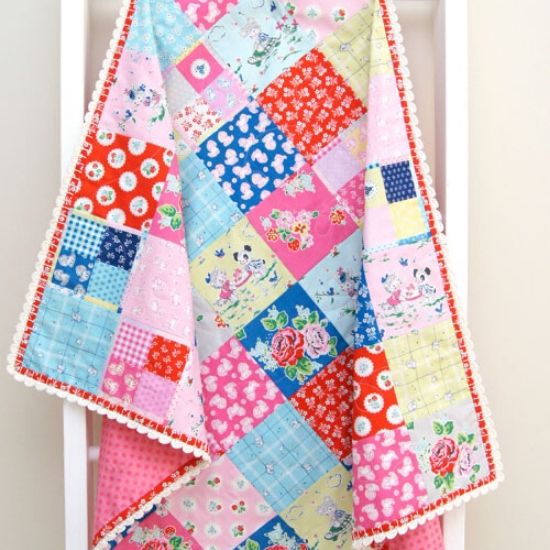Crochet Trim Blanket Quilt Pattern by Jemima Flendt of Tied with a Ribbon. A great pattern for use with a fat 1/8th bundle or 2 charm square packs.
