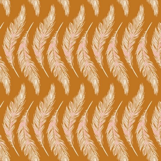 Presently Plumes Gold 100% Premium Cotton Fabric from the Homebody Collection designed by Maureen Cracknell for Art Gallery Fabrics. 112cm. Coordinating Fabrics available. Homebody celebrates the unspoken magic of being home. Find yourself surrounded by cheerful florals, cozy feathers, and soft textures that encapsulate a calm, peaceful space that nourishes and comforts you.