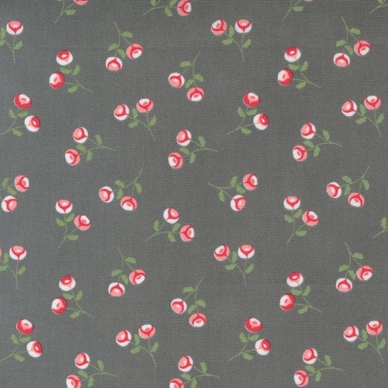 Fabric sold in 25cm increments across the WOF."I love everything about a cottage rose garden – the sights and smells, the beautiful colours, and the weathered cottage in the background. The chipped white paint of the cottage reveals soft greys underneath, a beautiful backdrop for the pinks and reds of the garden mixing with dark green foliage.