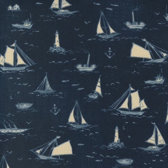 To The Sea 100% cotton fabric for patchwork, applique and sewing by Janet Clare for Moda. 112cm wide. Coordinating fabrics available. Read what Janet has to say about her new range "To The Sea" - I love the coast. But you already knew that as ‘To the Sea’ is my fifth coastal themed fabric collection! Spoondrift (n.) a showery sprinkling of sea-water or fine spray swept from the tops of waves I grew up not far from the white cliffs of Dover and have always loved being by the sea on blustery, windswept and bracing days.