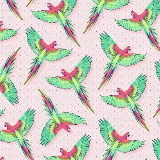 Macaw Ya Later in Dragonfruit 100% cotton fabric by Tula Pink for Free Spirit fabrics. 44" wide machine washable. Perfect for patchwork, applique, bags and clothing. Coordinating fabrics available.