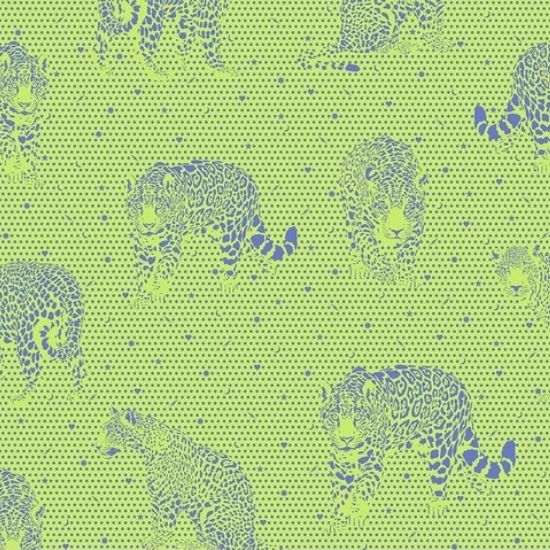 Lil Jaguar in Kiwi 100% cotton fabric by Tula Pink for Free Spirit fabrics. 44" wide machine washable. Perfect for patchwork, applique, bags and clothing. Coordinating fabrics available.