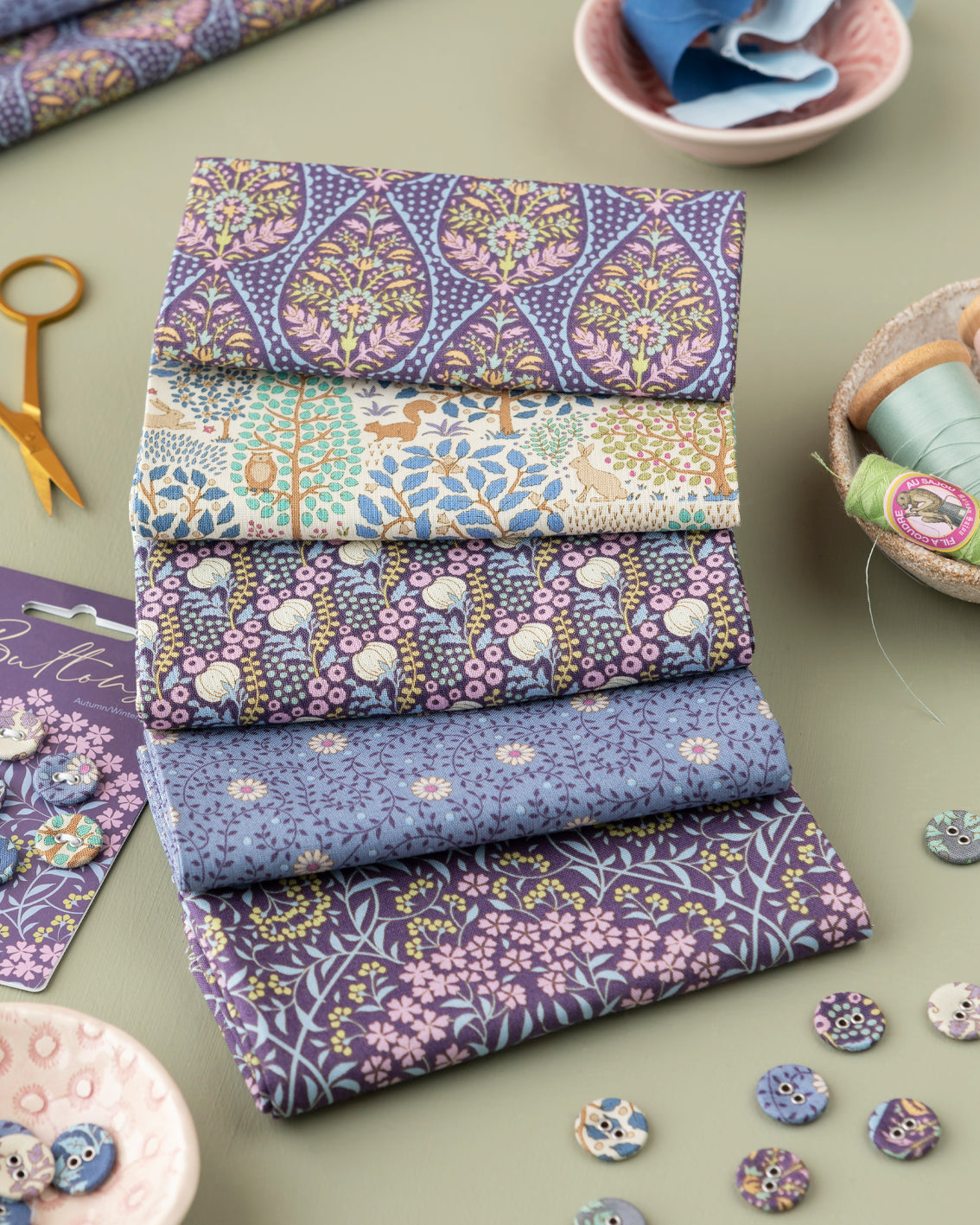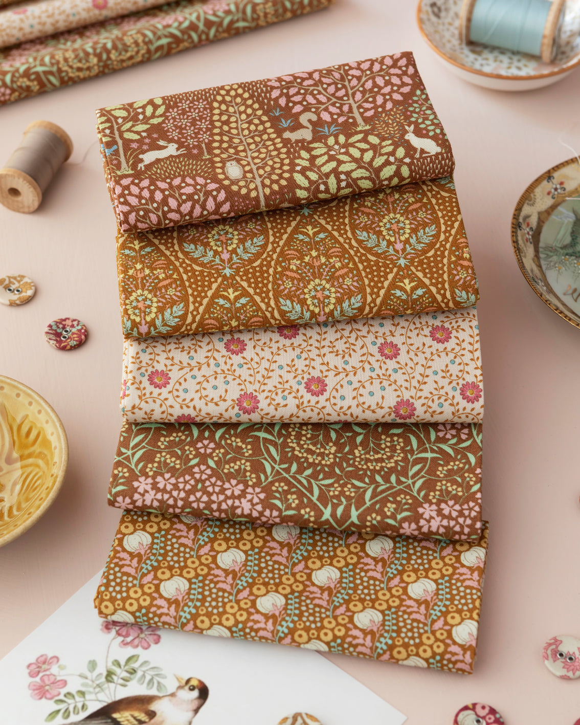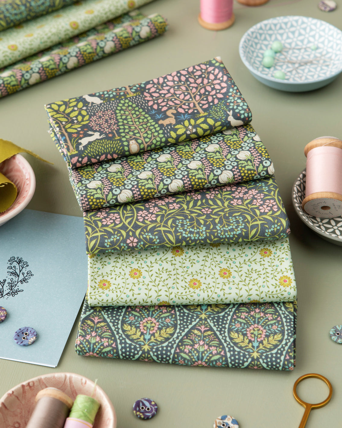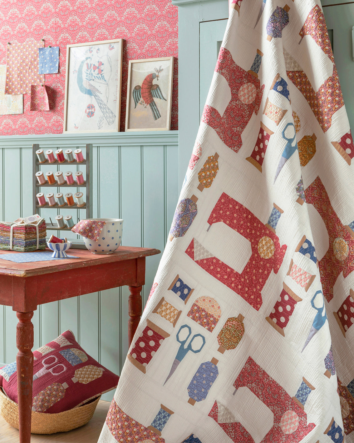 Where is your sanctuary? The woods, the sewing room, in bed with a good book? Or maybe your haven is not a specific place, but rather a more mindful escape. This soft, muted autumn/winter collection is all about feeling safe, cozy and grounded in your sanctuary. A good foundation where you can let your mind fly, dreaming of all the things you want to create and experience. Sanctuary is divided into warm and cold tones, with ornamental patterns combined with woodland scenes and florals to create a safe and homely look.My sanctuary is first and foremost my home and the nature that surrounds it, and of course escaping into the world of sewing and crafts. The Sanctuary Quilt can symbolize home or a beloved cabin. It’s a very easy quilt, great for beginners. The Paperbird Quilt and Pillows combine the love of paper with the love of fabric. In Japan, paper cranes are used as symbols of hope and peace, and although the Paperbird patterns do not specifically depict cranes, they can still represent that lovely symbolism that is so sorely needed in the world today. For so many of us, the sewing room is our ultimate sanctuary. This sanctuary is depicted in the Make Do and Mend Quilts.