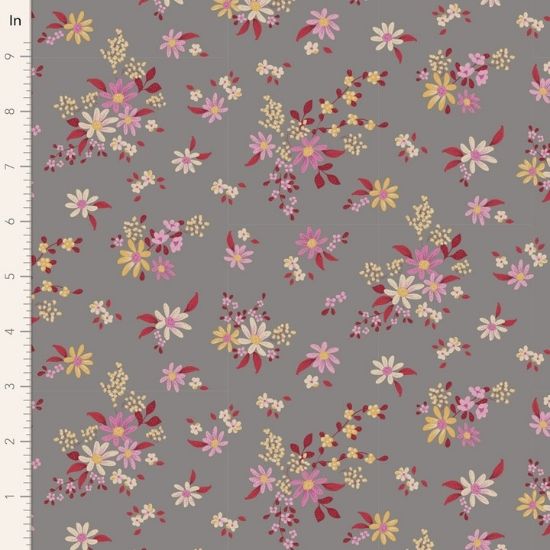 Chic Escape, Daisyfield in Grey Fabric 100% cotton fabric for Tilda. 112cm wide. Coordinating fabrics and precuts available.