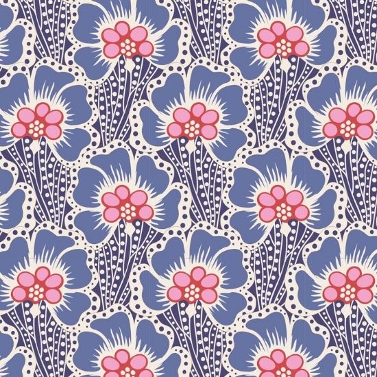 Cotton Beach, Ocean Flower in Blue Fabric 100% cotton fabric for Tilda. 112cm wide. Coordinating fabrics and precuts available.