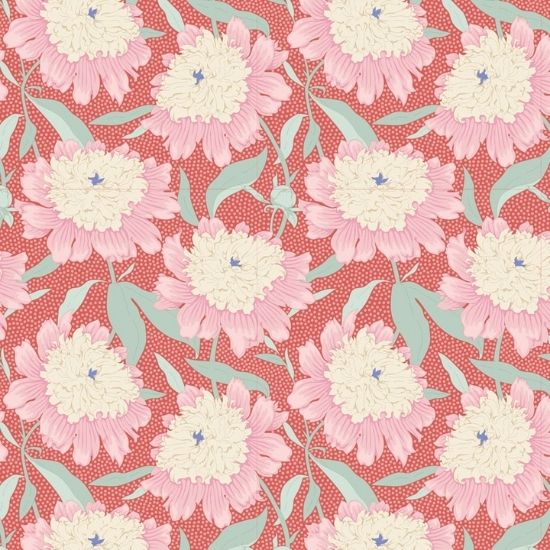 Garden Life Bowl Peony in Coral Fabric 100% cotton fabric for Tilda. 112cm wide. Coordinating fabrics and precuts available.