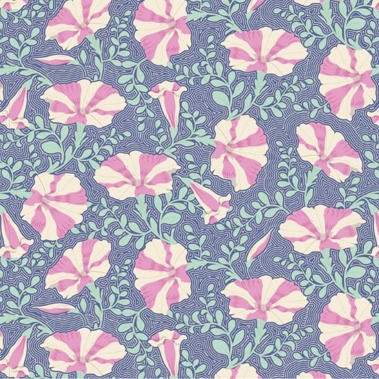 Garden Life Striped Petunia in Blue Fabric 100% cotton fabric for Tilda. 112cm wide. Coordinating fabrics and precuts available.