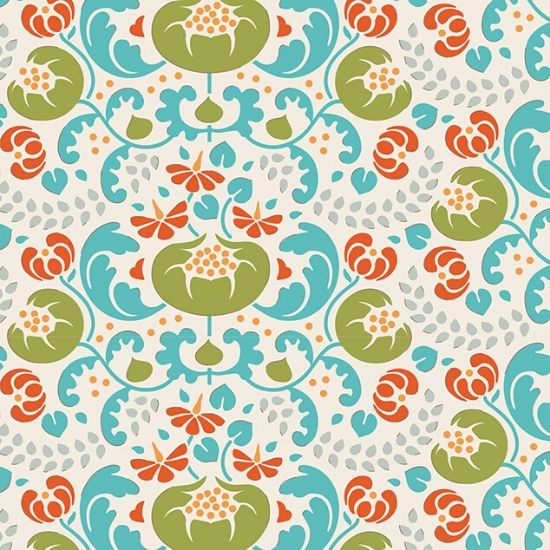 LazyDays is inspired by florals from both the Art Nouveau and Art Deco movements. With the cool blues and teals combined with lilac and coral red, its a beautiful collection for a sweet yet decadent summer.