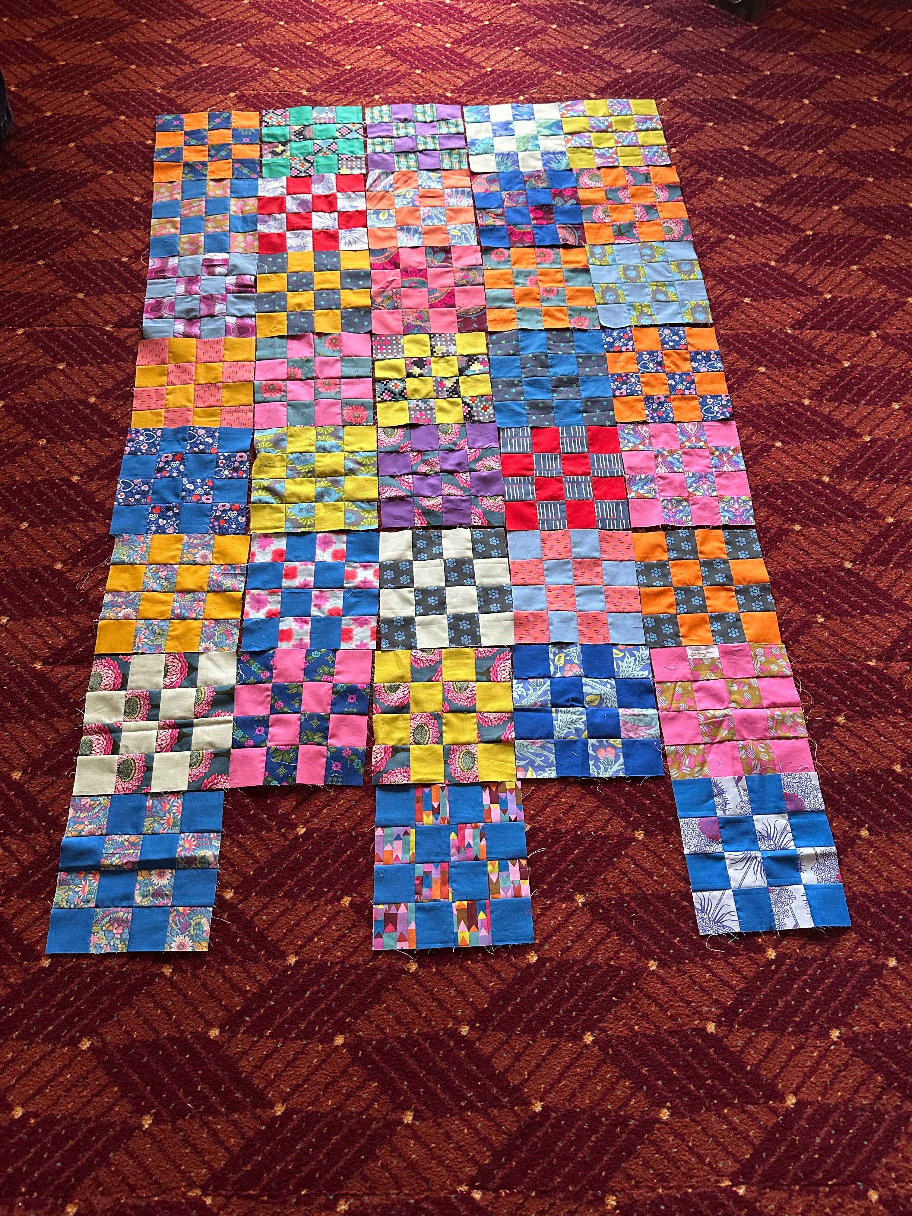 The original quilt is 77in x 85in however the size can be adjusted by adding or subtracting rows.