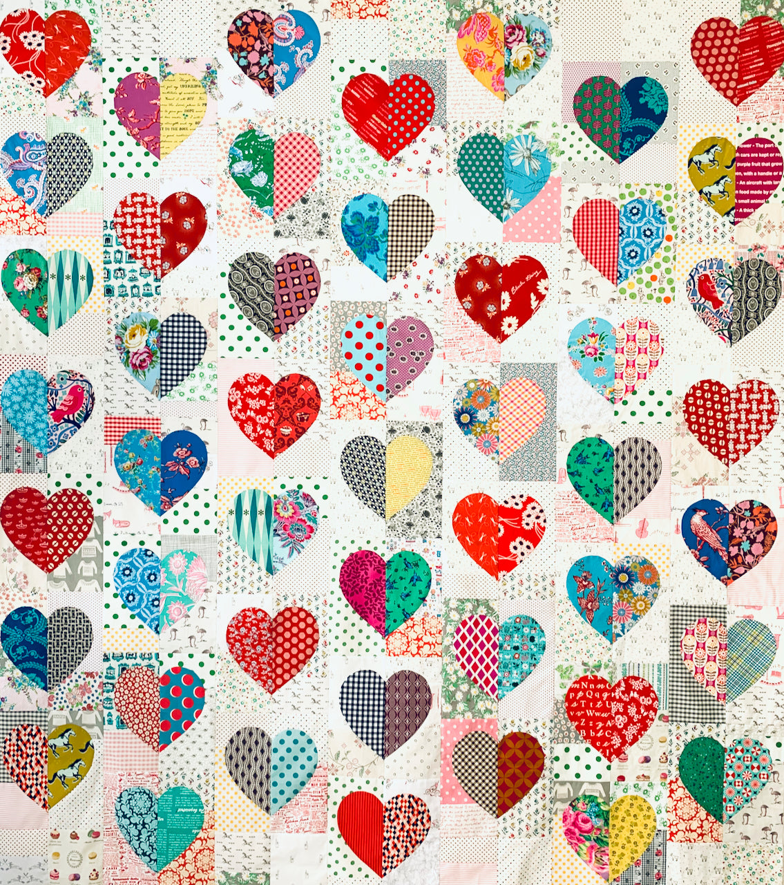 Nothing makes a person happier than having a happy heart.” Celebrate all your favourite fabrics with this happy scrappy heart quilt under Rachael's direction discover a quilt that uses a mix of easy hand applique and machine piecing.